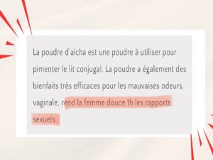 Poudre AICHA, « pour resserer le vagin » : Qu’en est-il ?